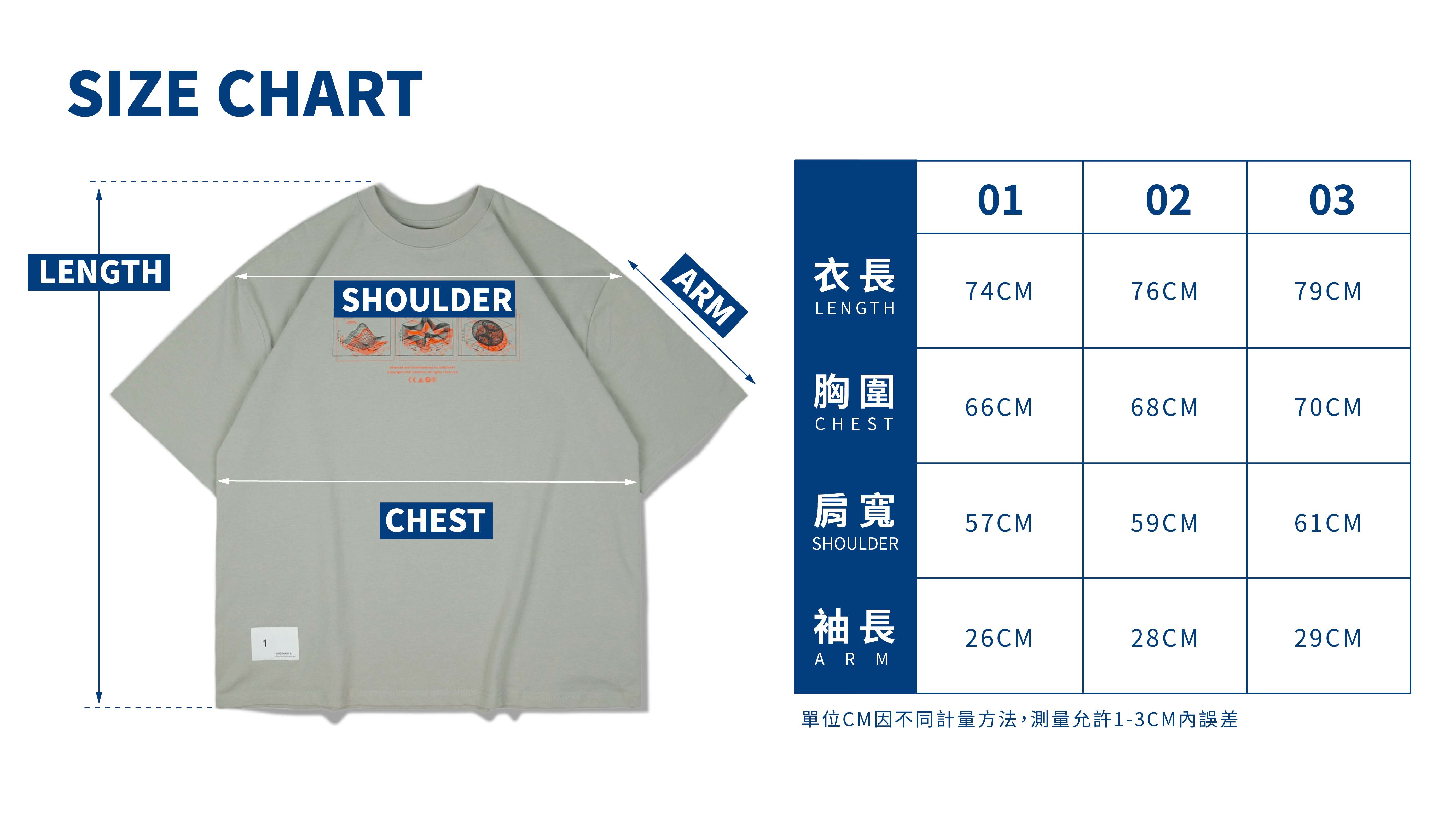 01:衣長74cm / 胸寬66cm / 肩寬57cm / 袖長26cm