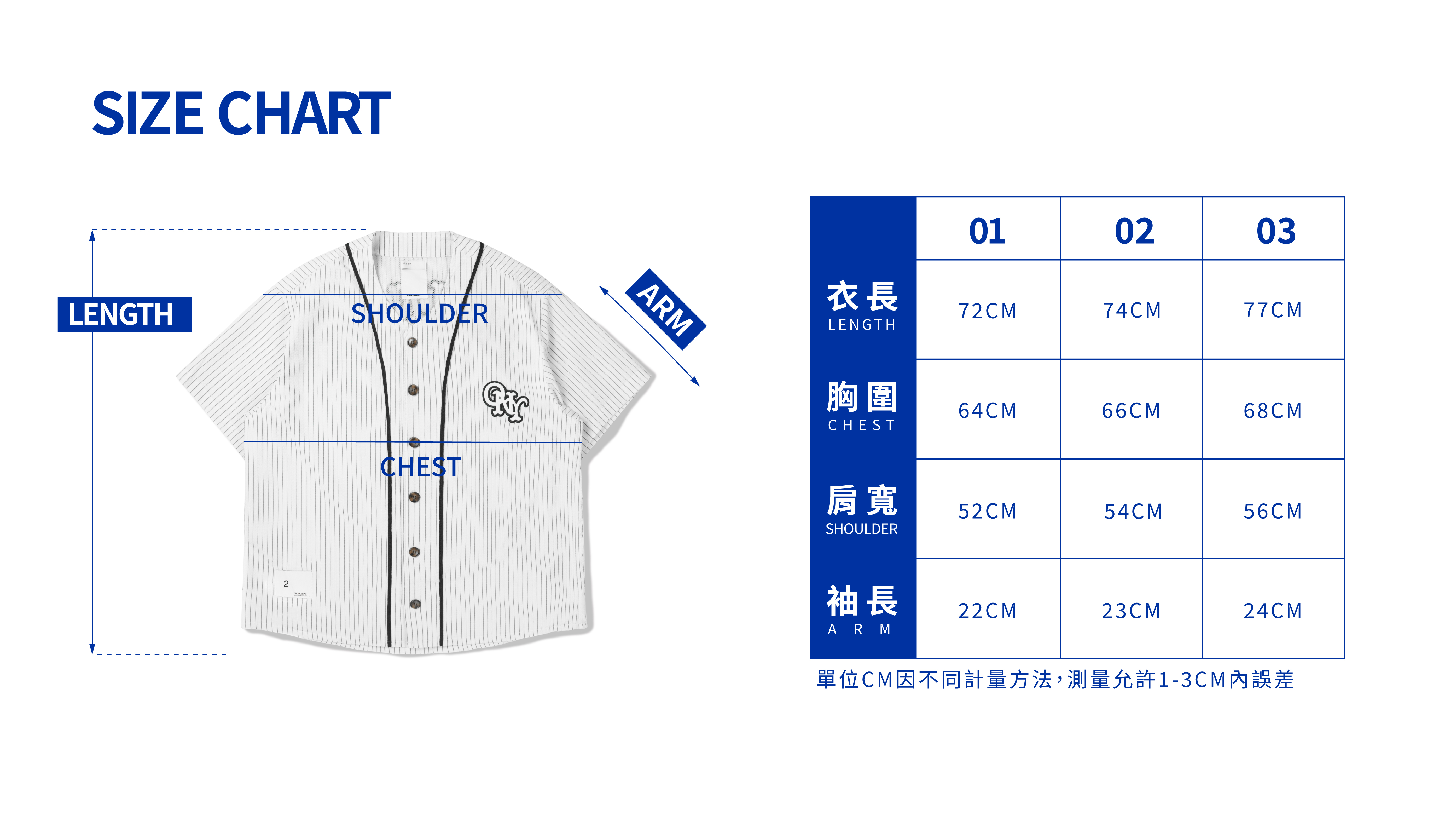01:衣長72cm / 胸寬64cm /肩寬52cm/袖長22cm