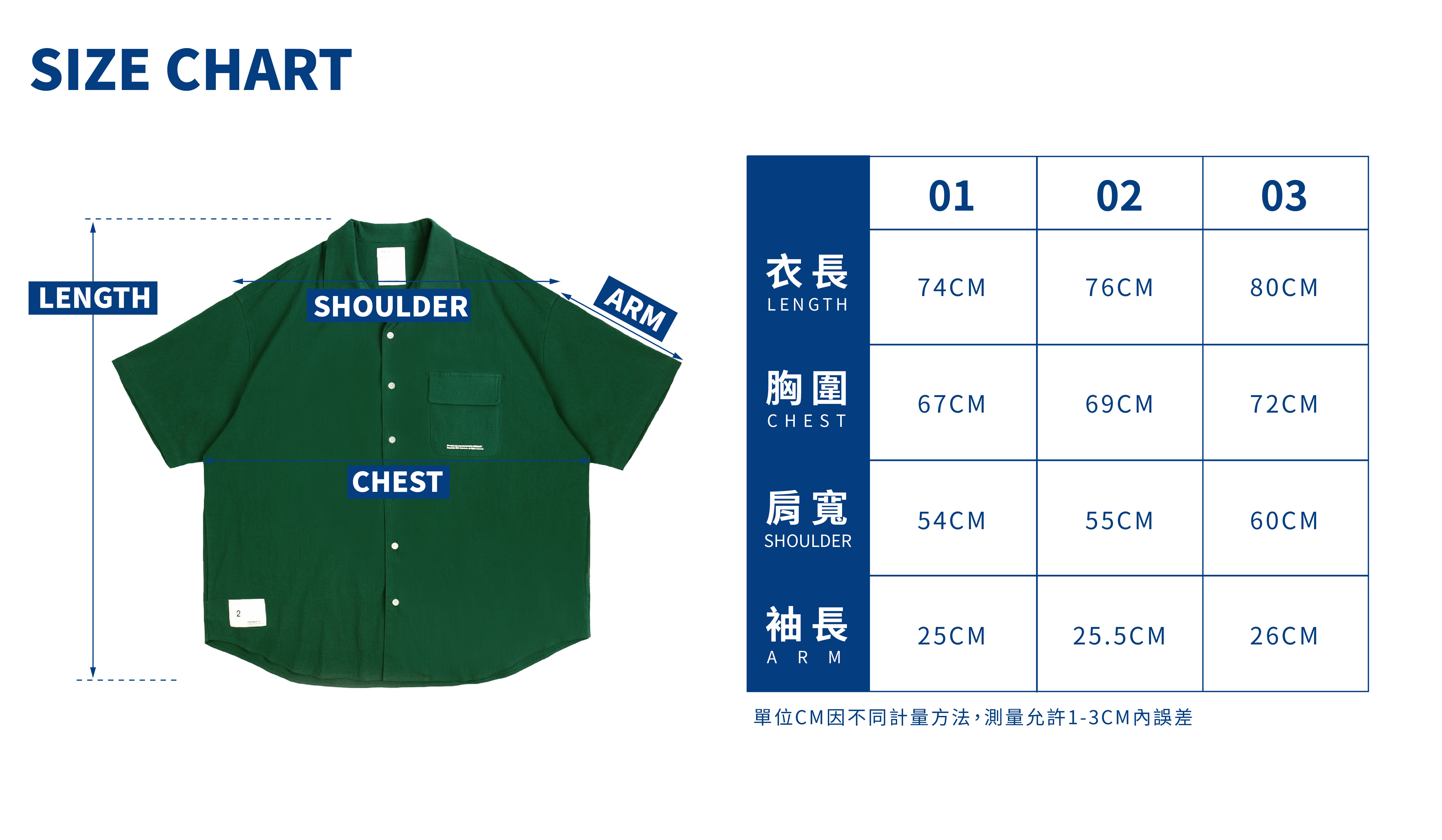 01:衣長74cm / 胸寬67cm / 肩寬54cm / 袖長25cm