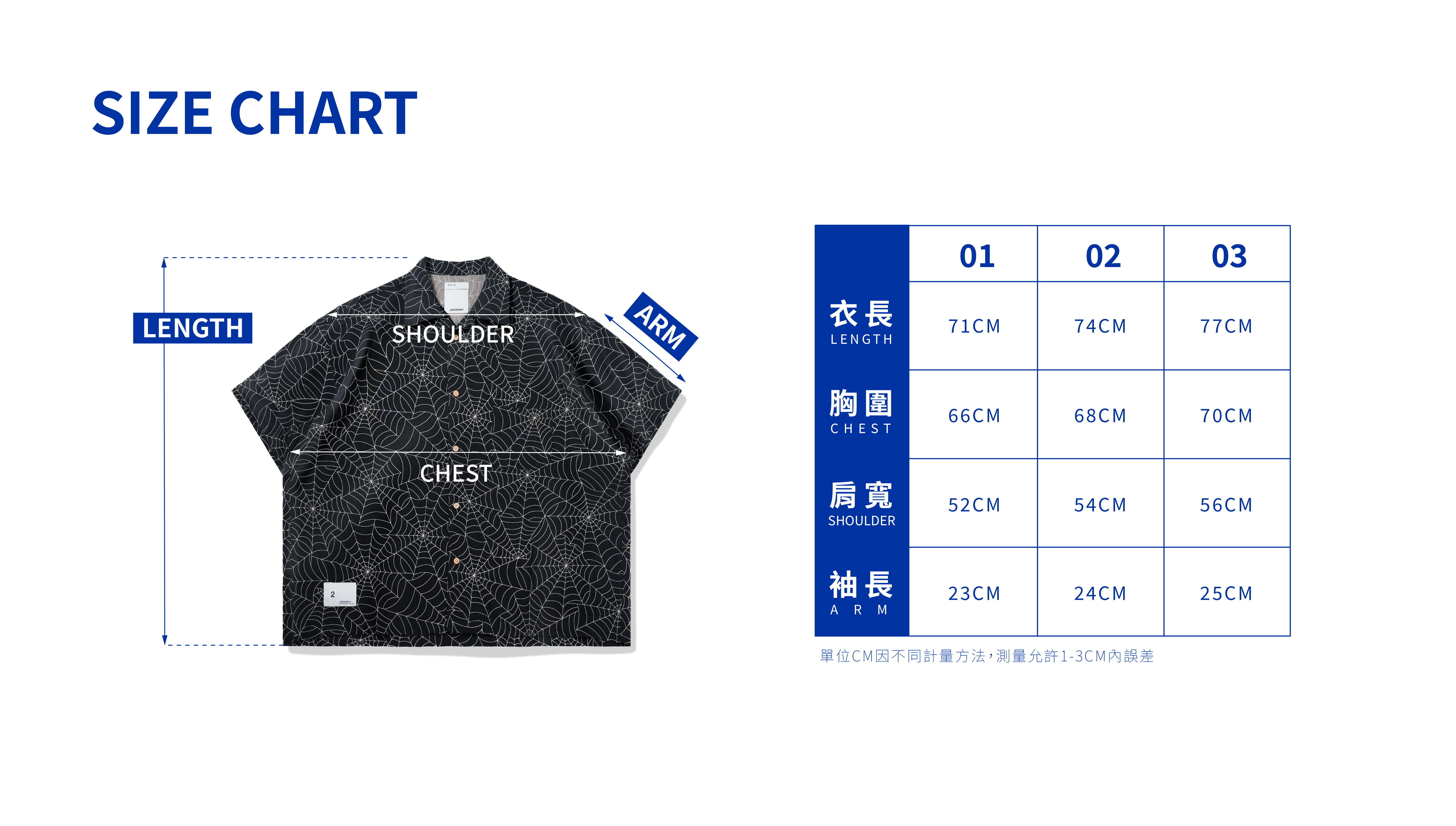 01:衣長71cm / 胸寬66 cm / 肩寬52cm / 袖長23cm