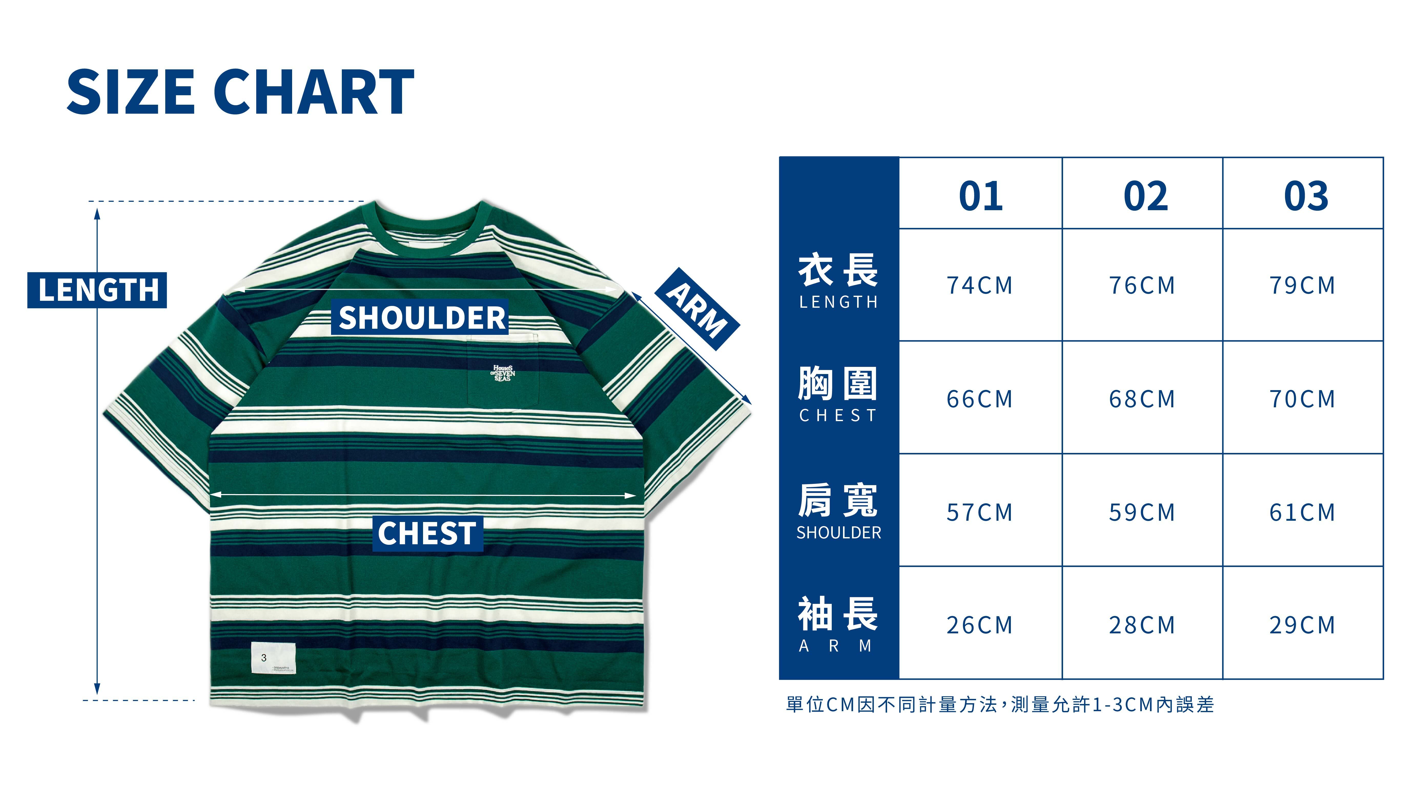 01:衣長74cm / 胸寬66cm / 肩寬57cm / 袖長26cm
