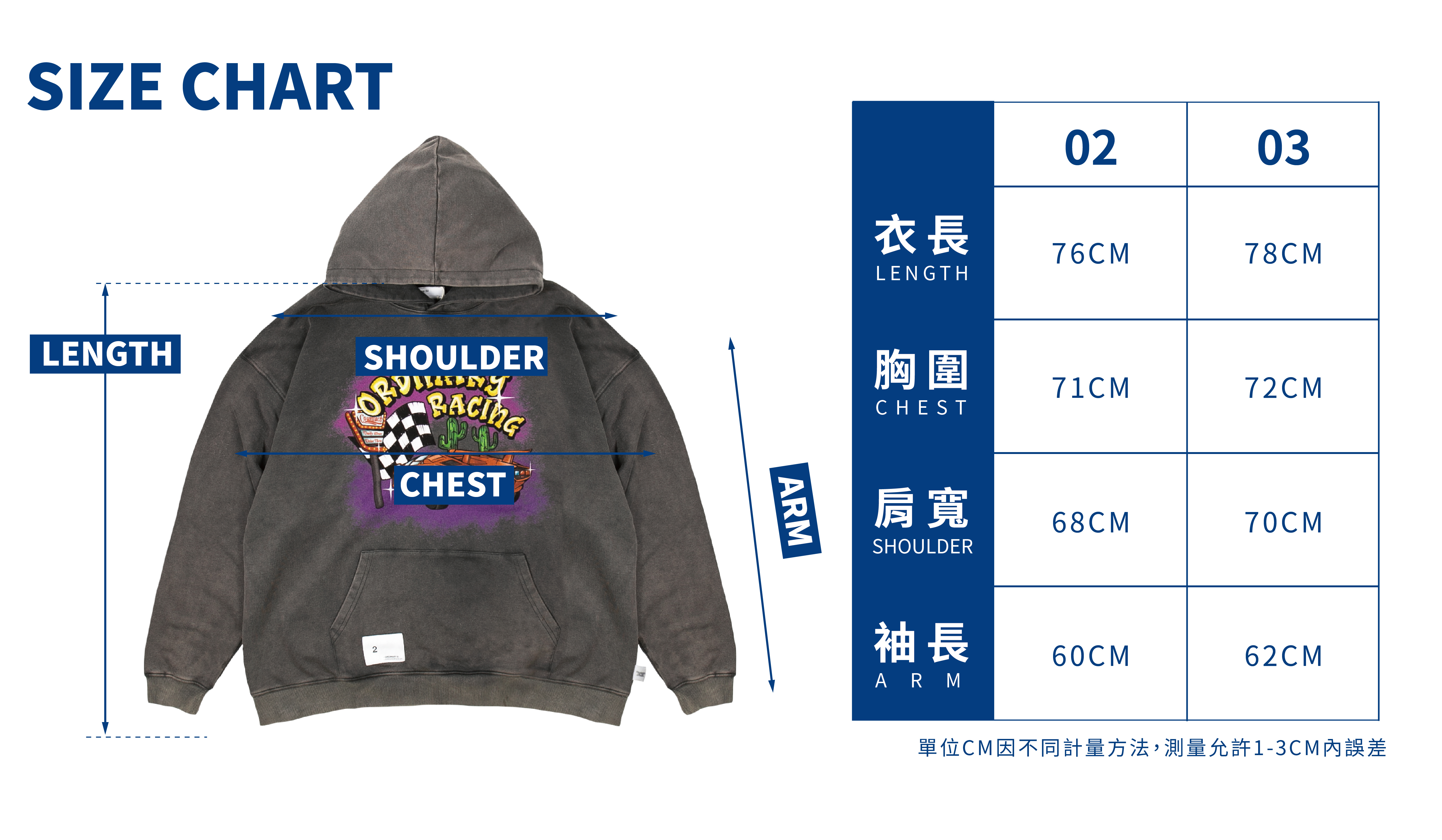 02:衣長76cm / 胸寬768cm / 肩寬65cm / 袖長62cm