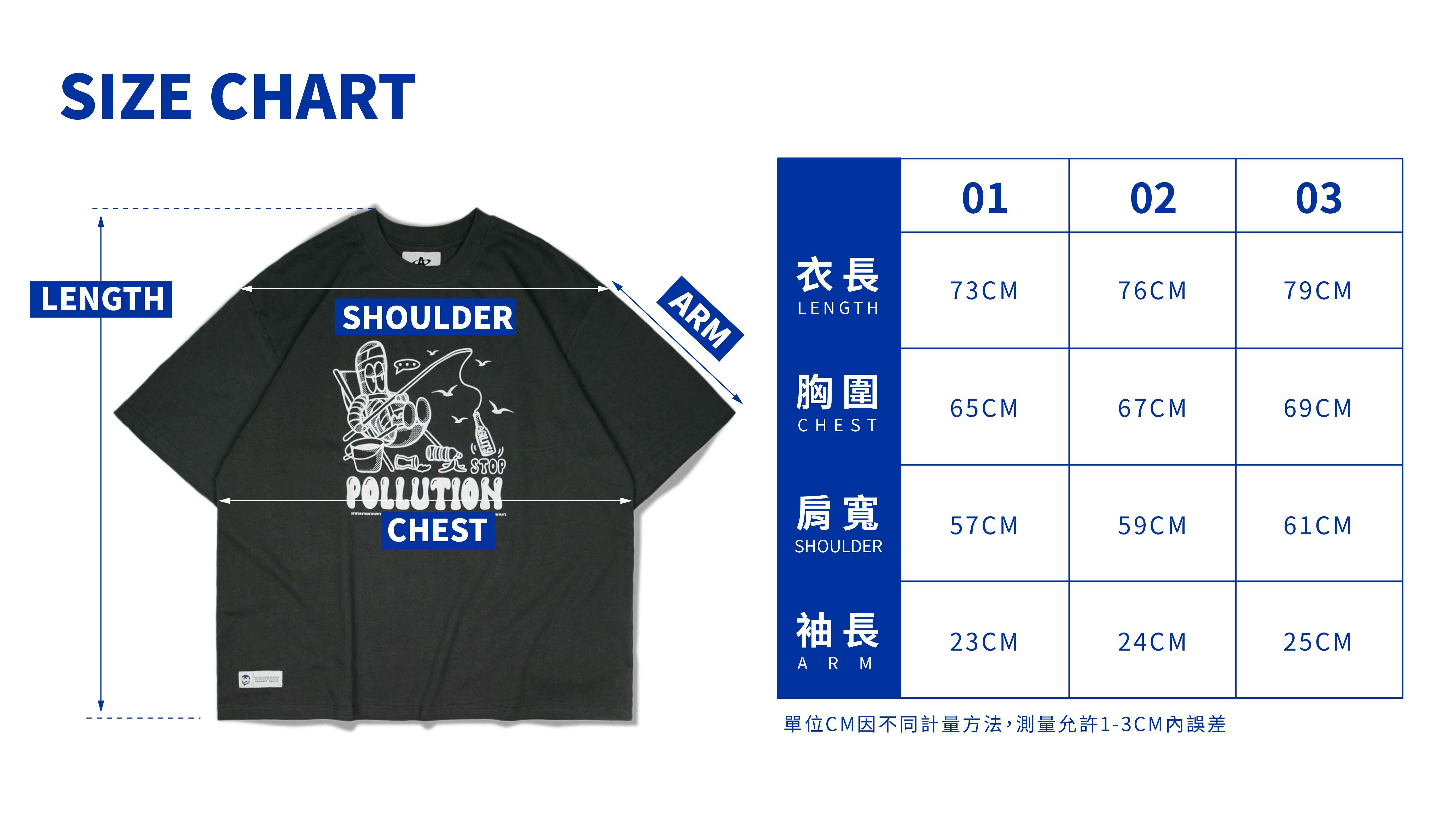 01:衣長73cm / 胸寬65cm / 肩寬57cm / 袖長23cm