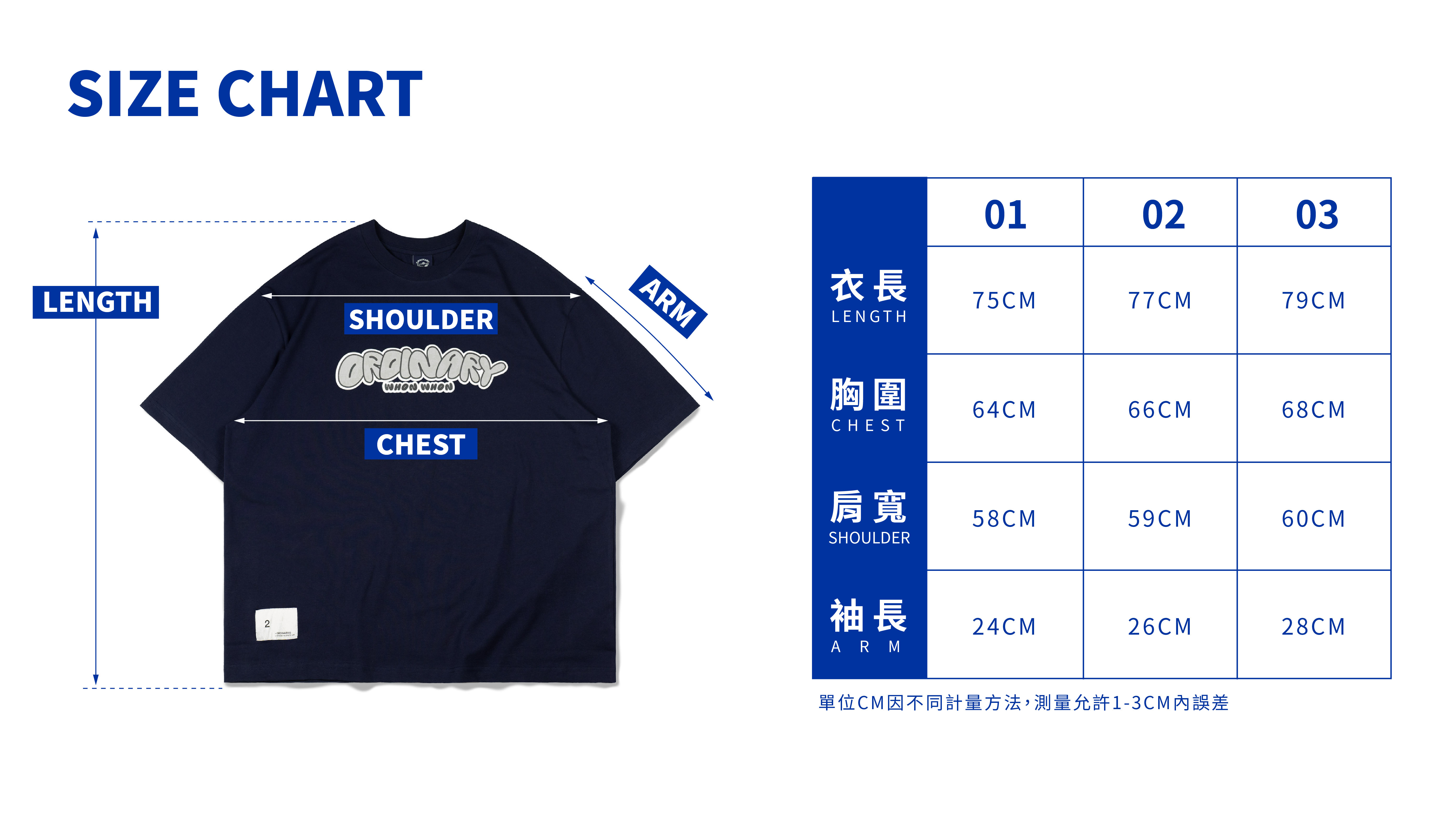 01:衣長75cm / 胸寬64cm /肩寬58cm/袖長24cm