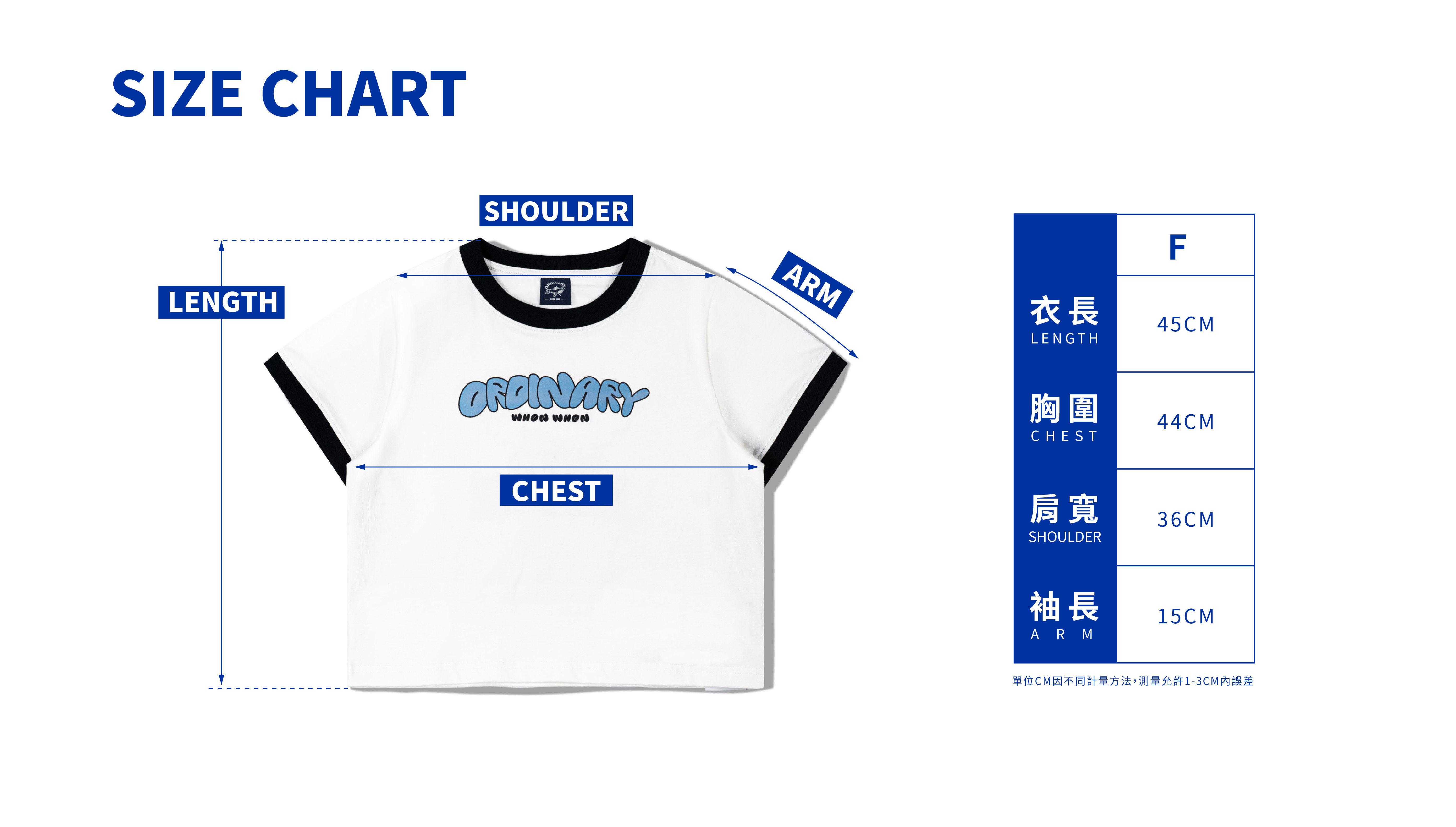 F:衣長45cm / 胸寬44cm /肩寬36cm/袖長15cm