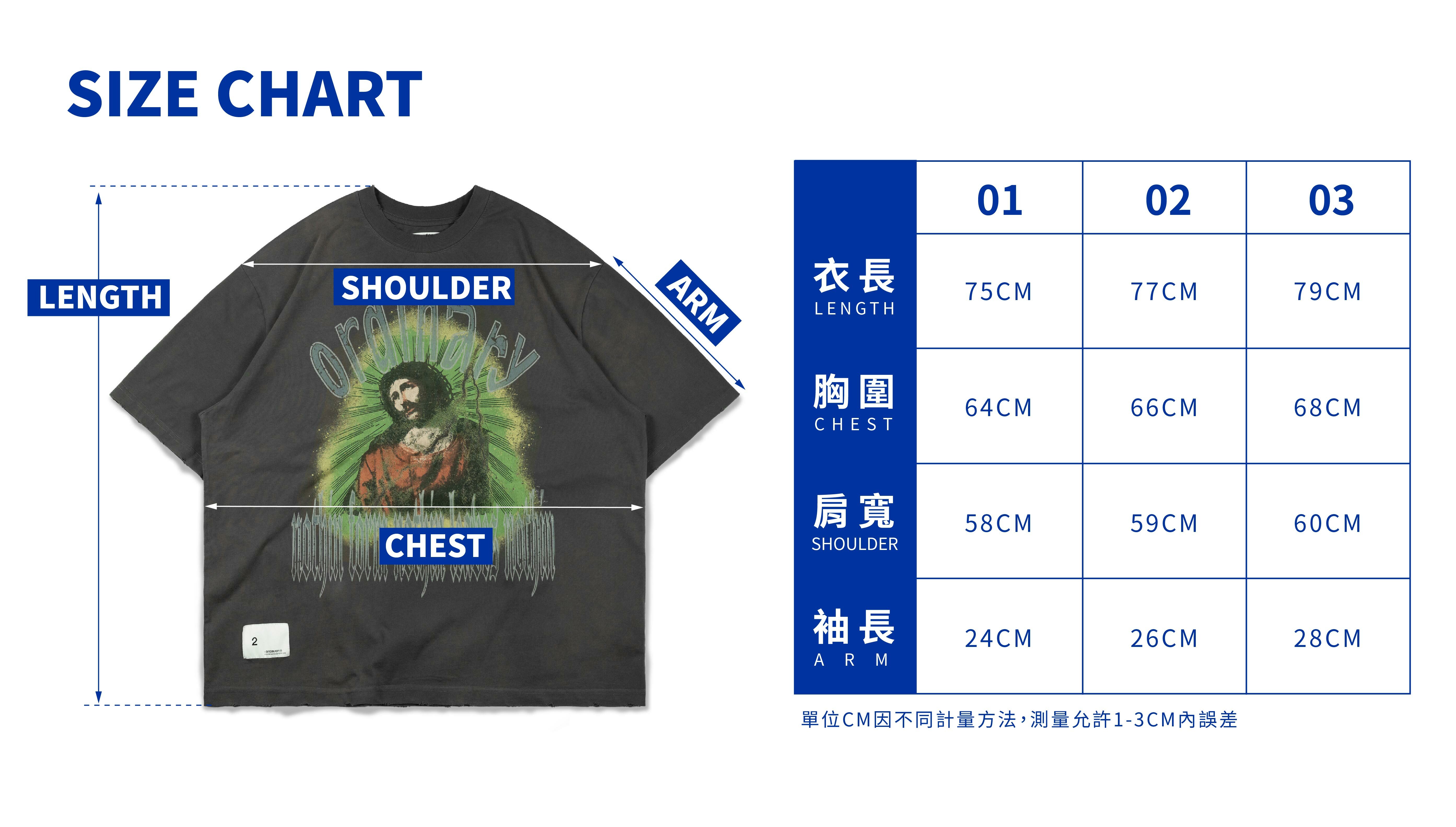 01:衣長75cm / 胸寬64cm /肩寬58cm/袖長24cm