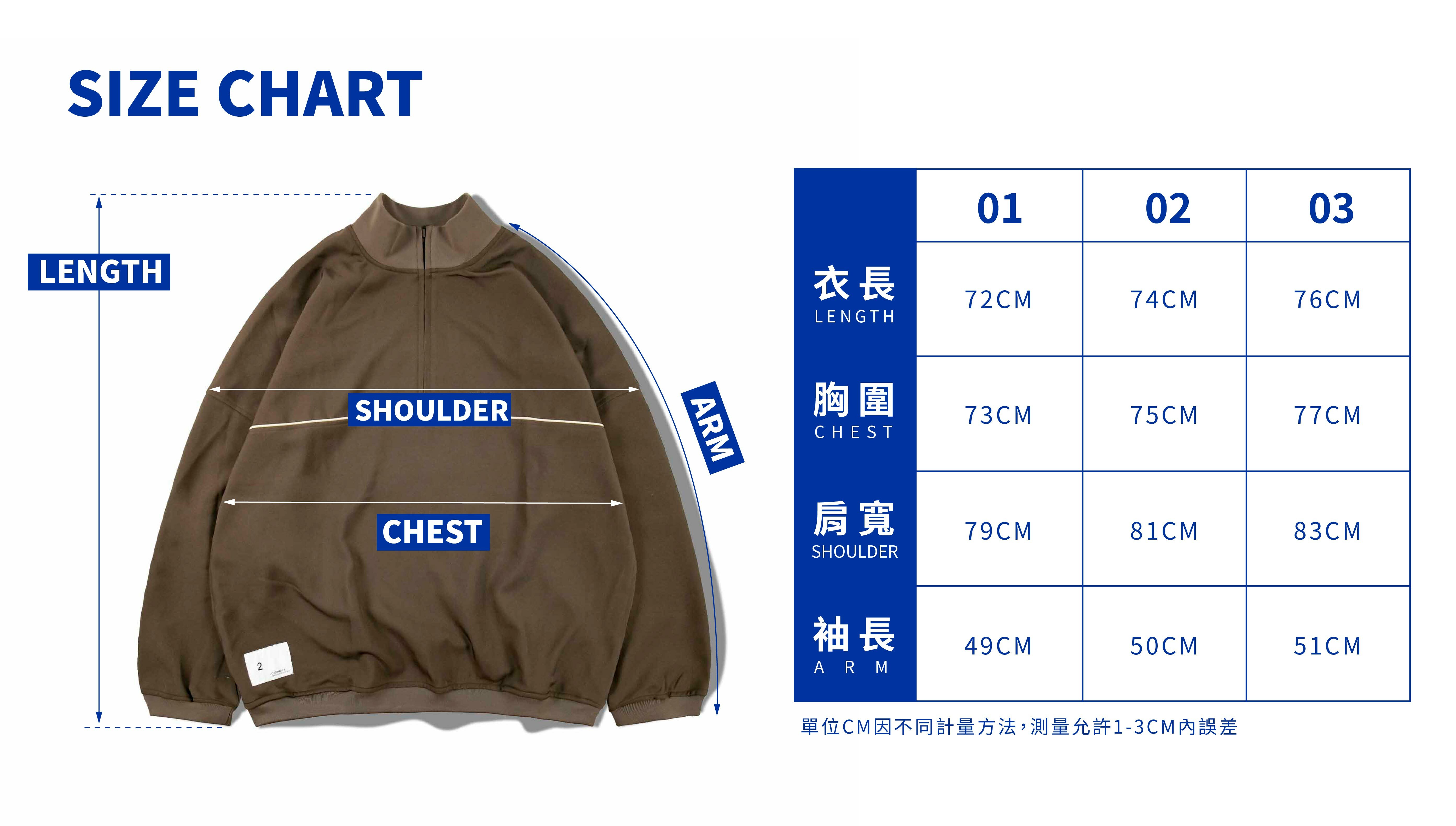 02:衣長74cm / 胸寬75cm / 肩寬81cm / 袖長50cm