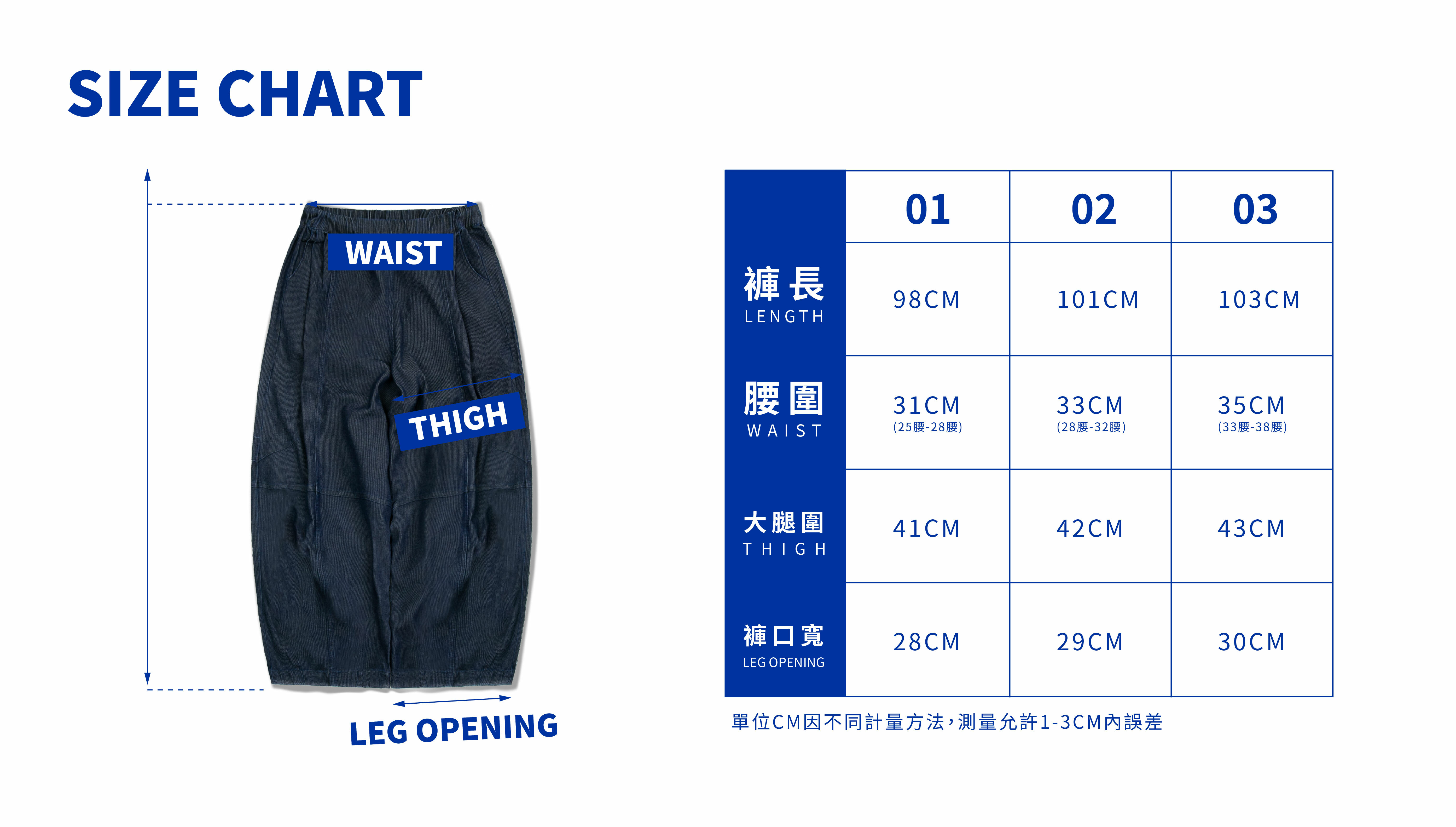 01:褲長98 腰圍31 (25-28腰)褲腳28 大腿圍41