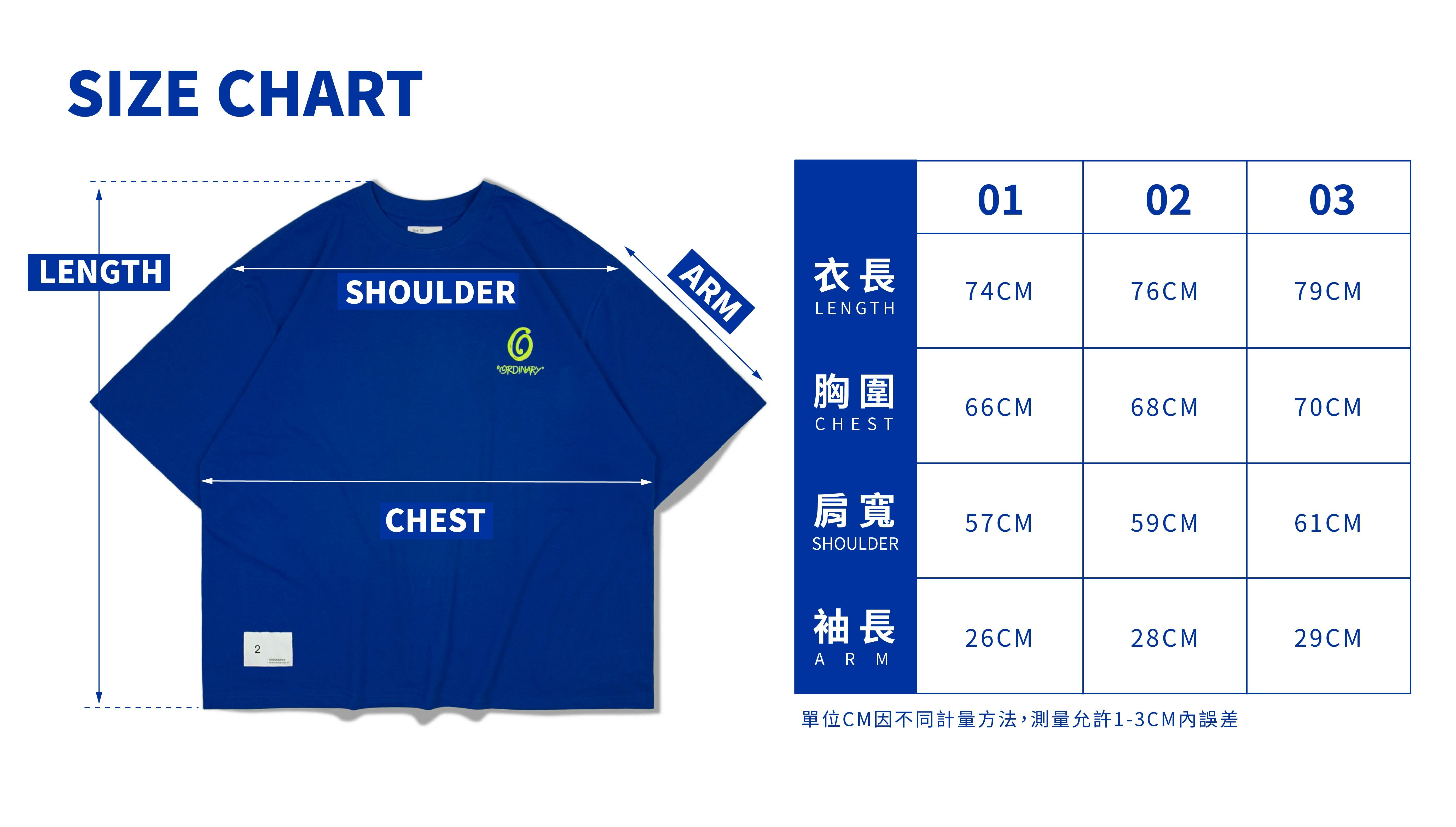 01:衣長74cm / 胸寬66cm / 肩寬57cm / 袖長26cm