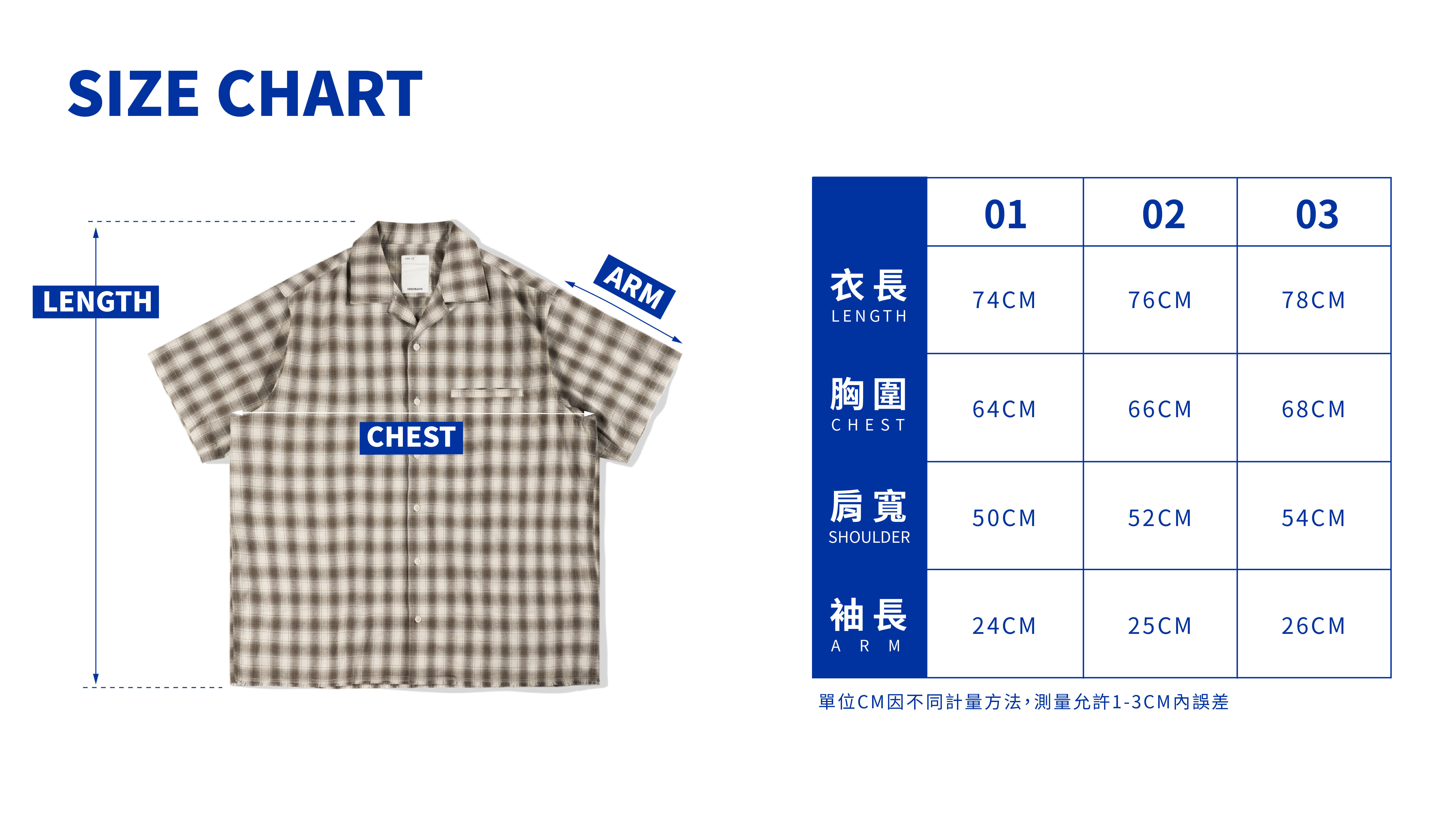 01:衣長74cm / 胸寬64cm /肩寬50cm/袖長24cm
