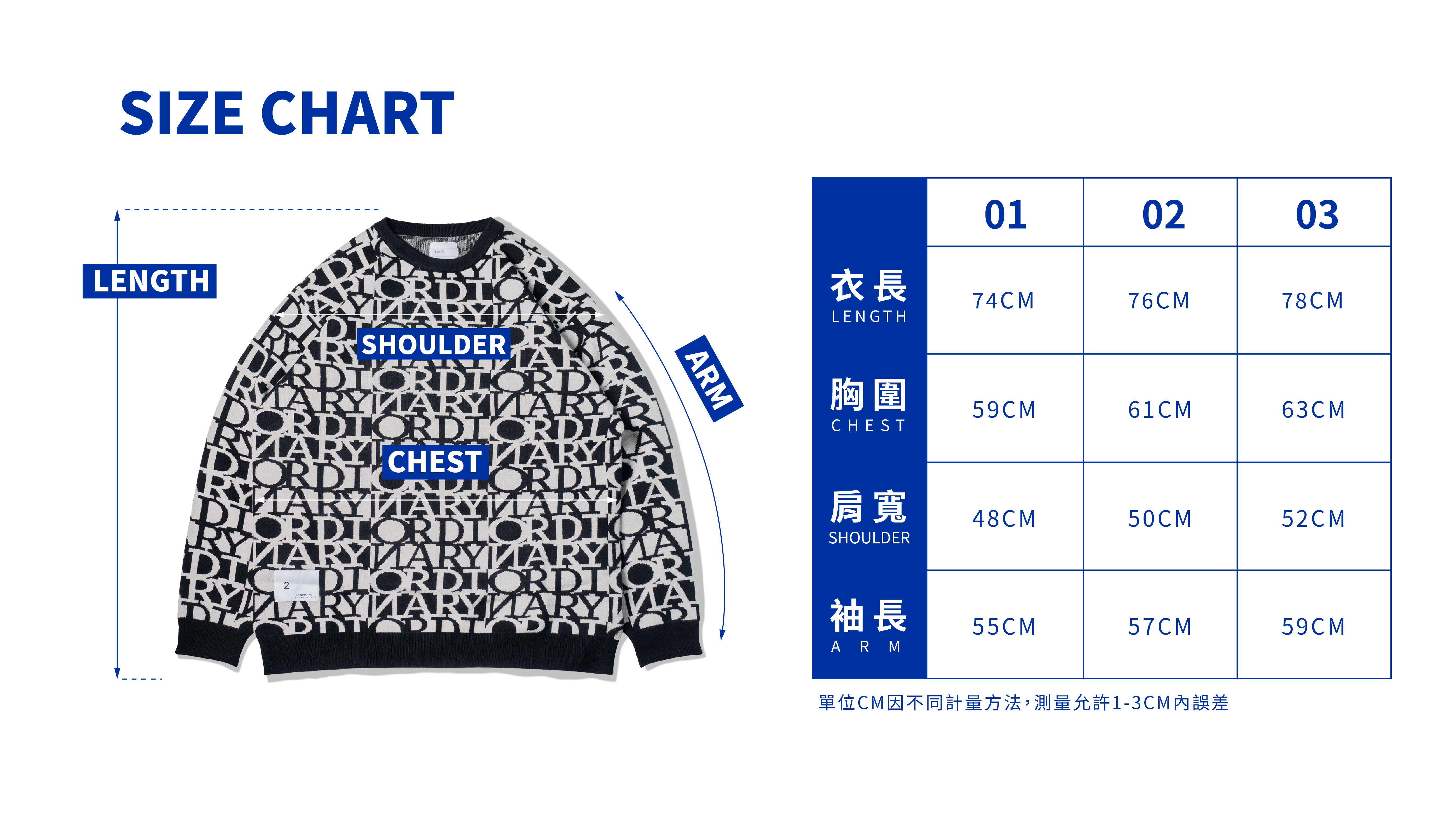 01:衣長74cm / 胸寬59cm / 肩寬48cm / 袖長55cm
