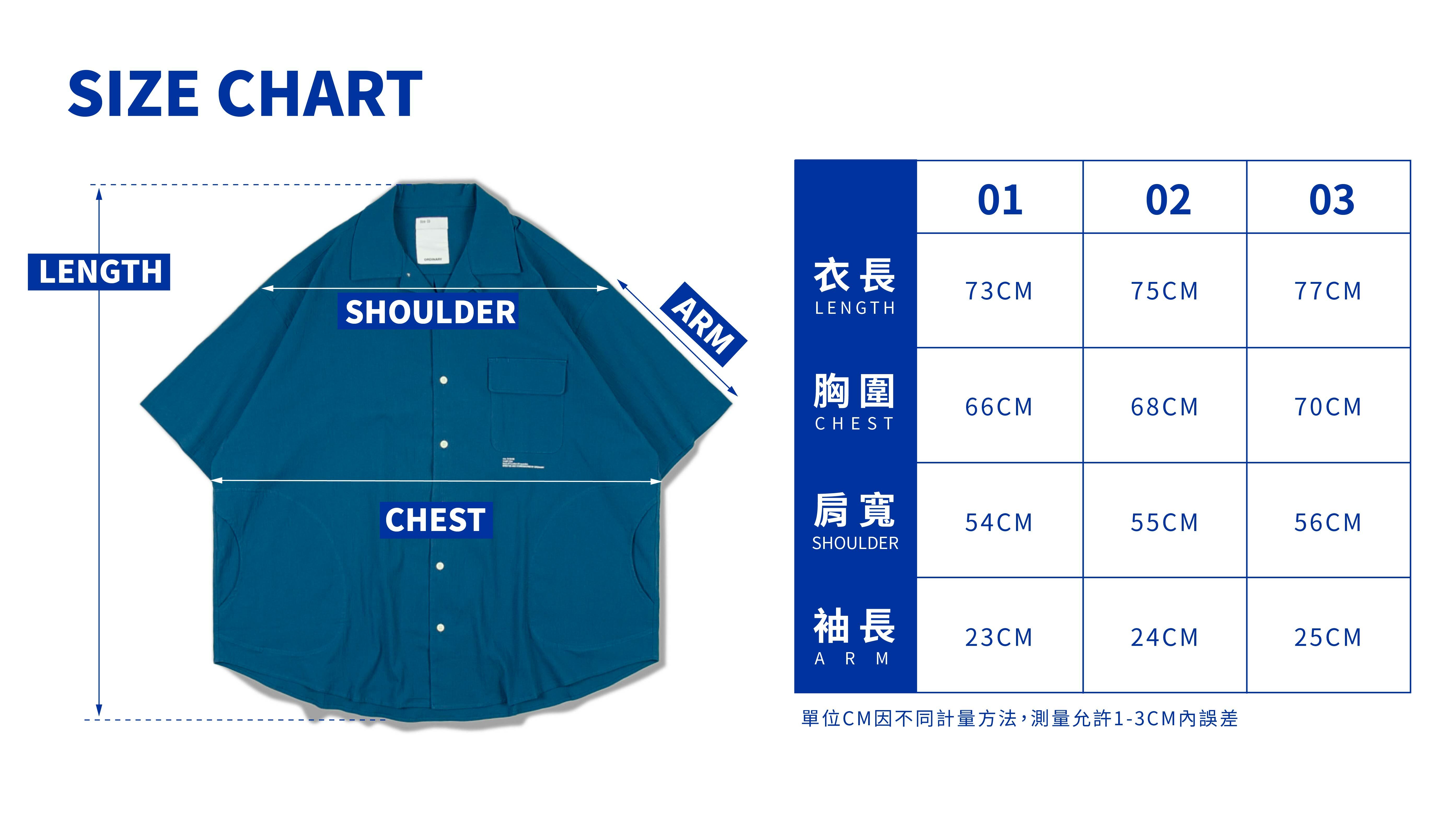 01:衣長73cm / 胸寬66cm / 肩寬54cm / 袖長23cm