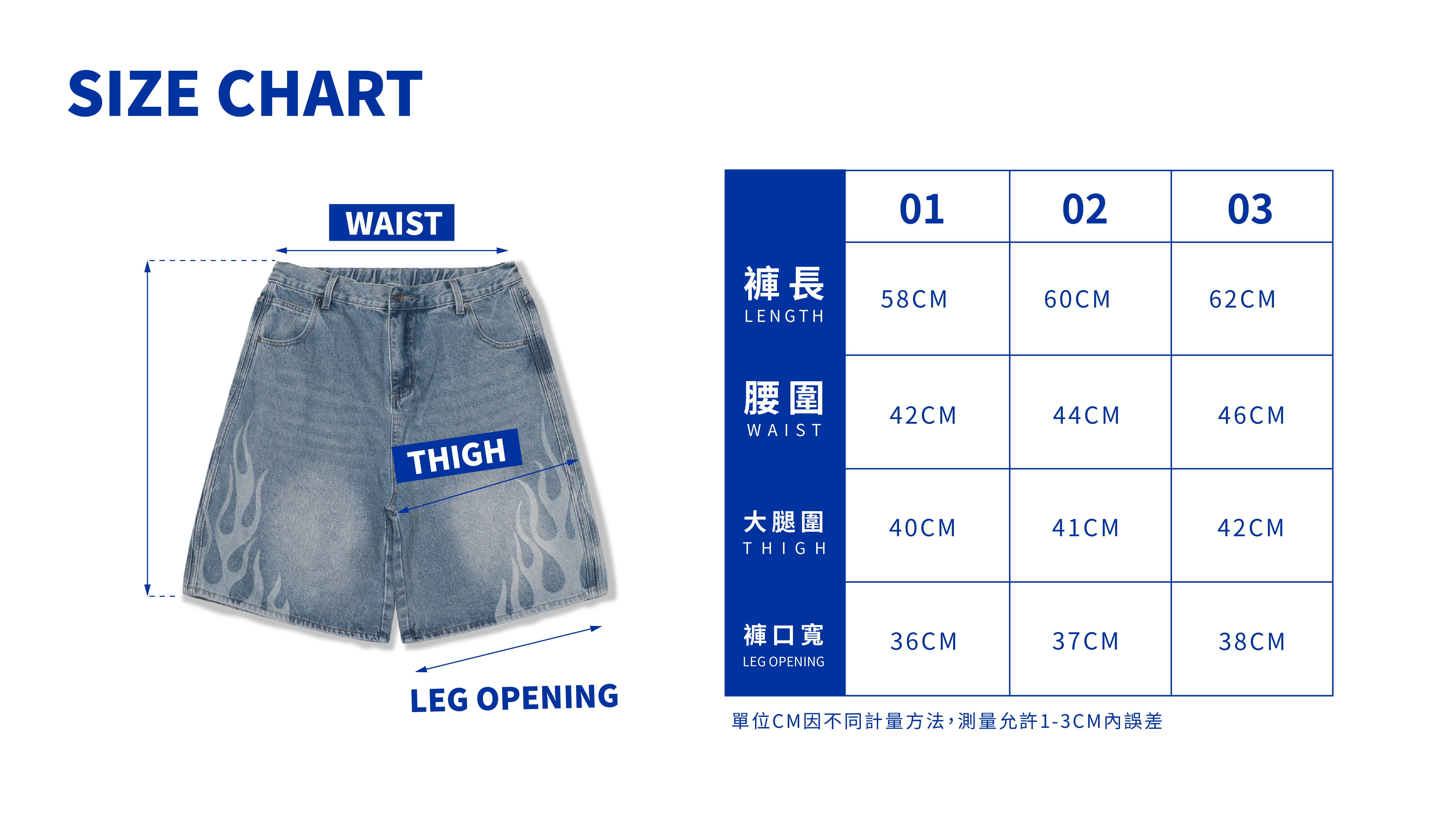 01:褲長58cm/腰圍42cm/大腿圍40cm/褲口寬36cm