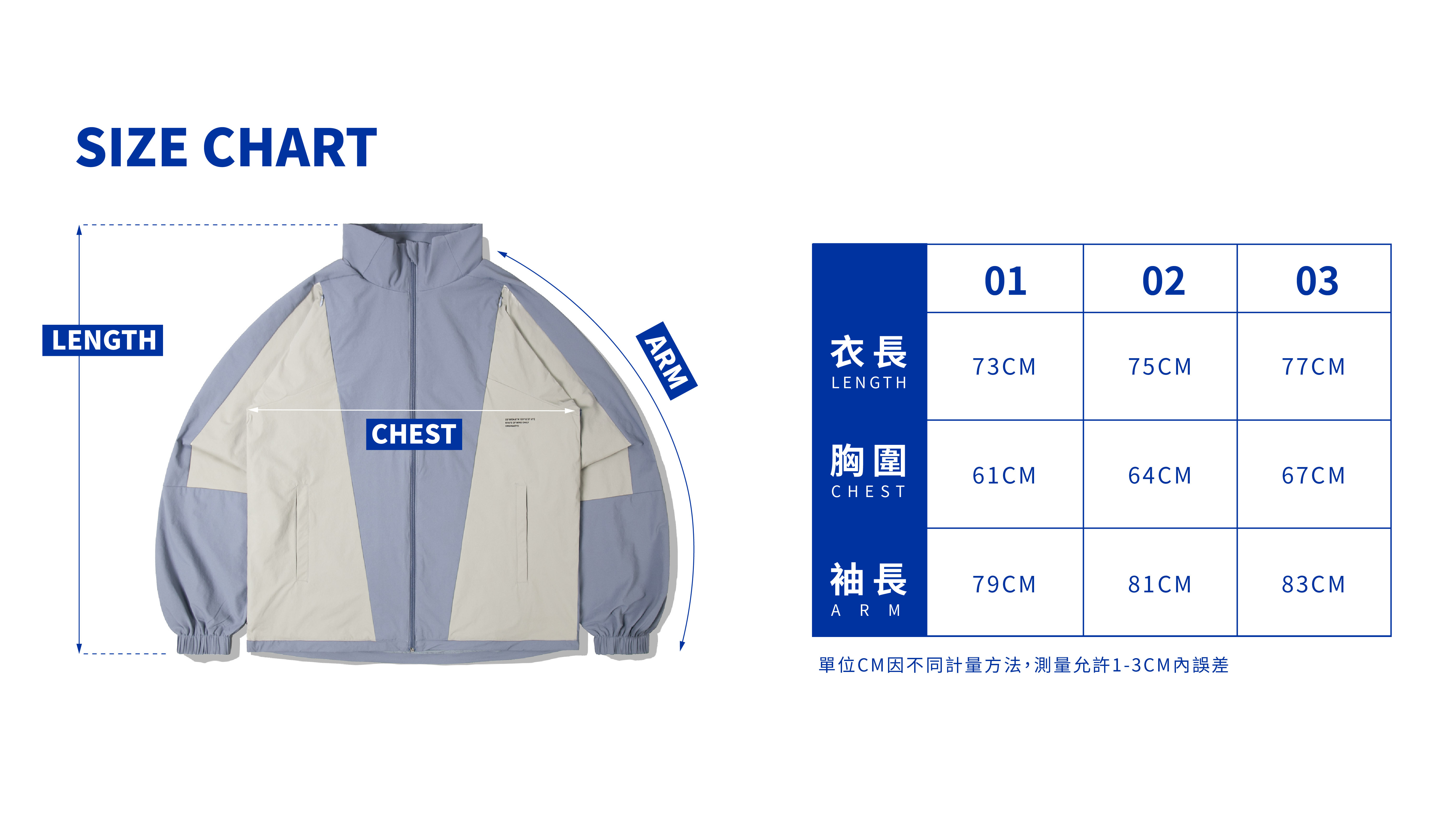 01:衣長73cm / 胸寬61cm / 袖長79cm