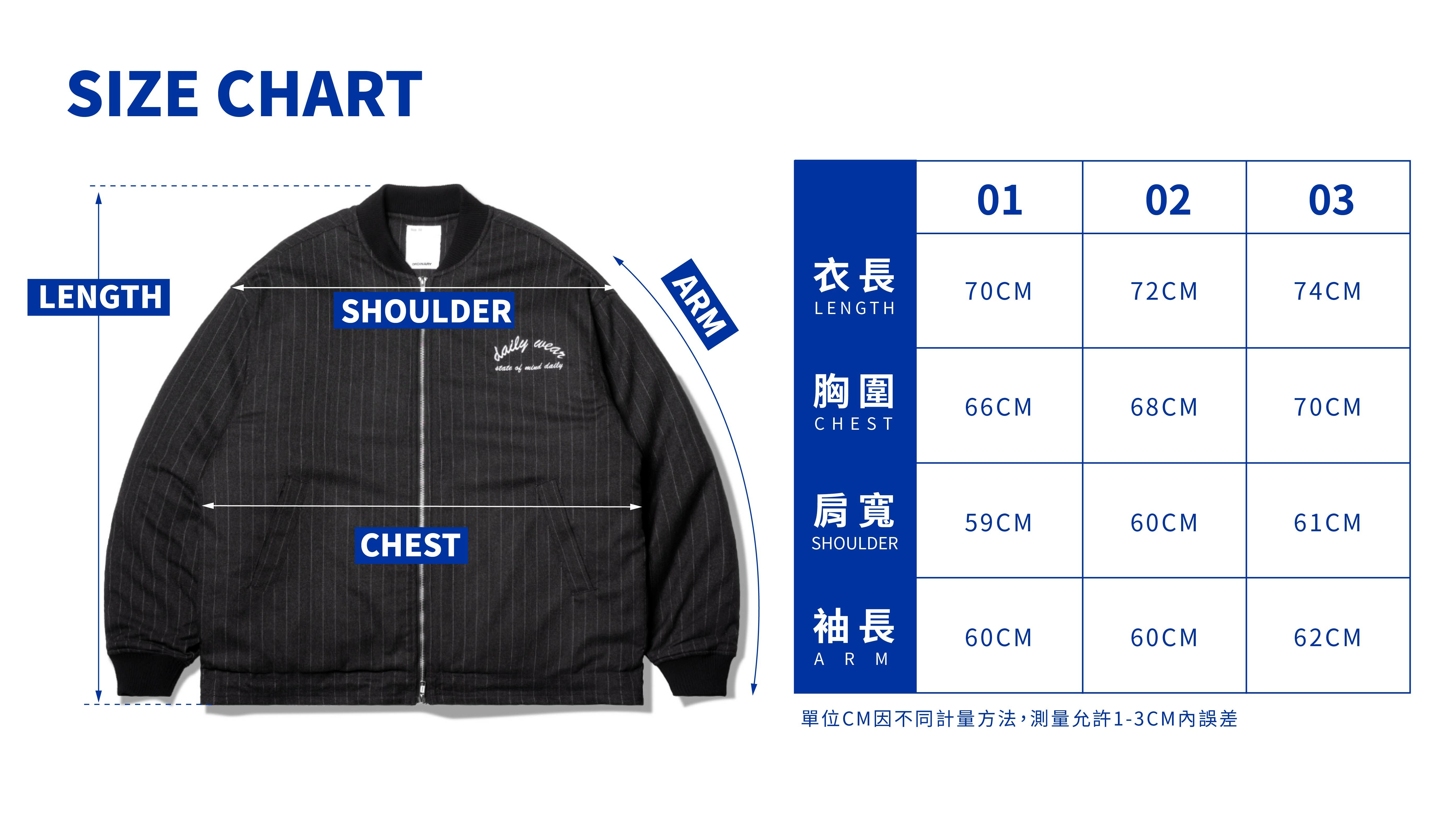 01:衣長70cm / 胸寬66cm / 肩寬59cm / 袖長60cm