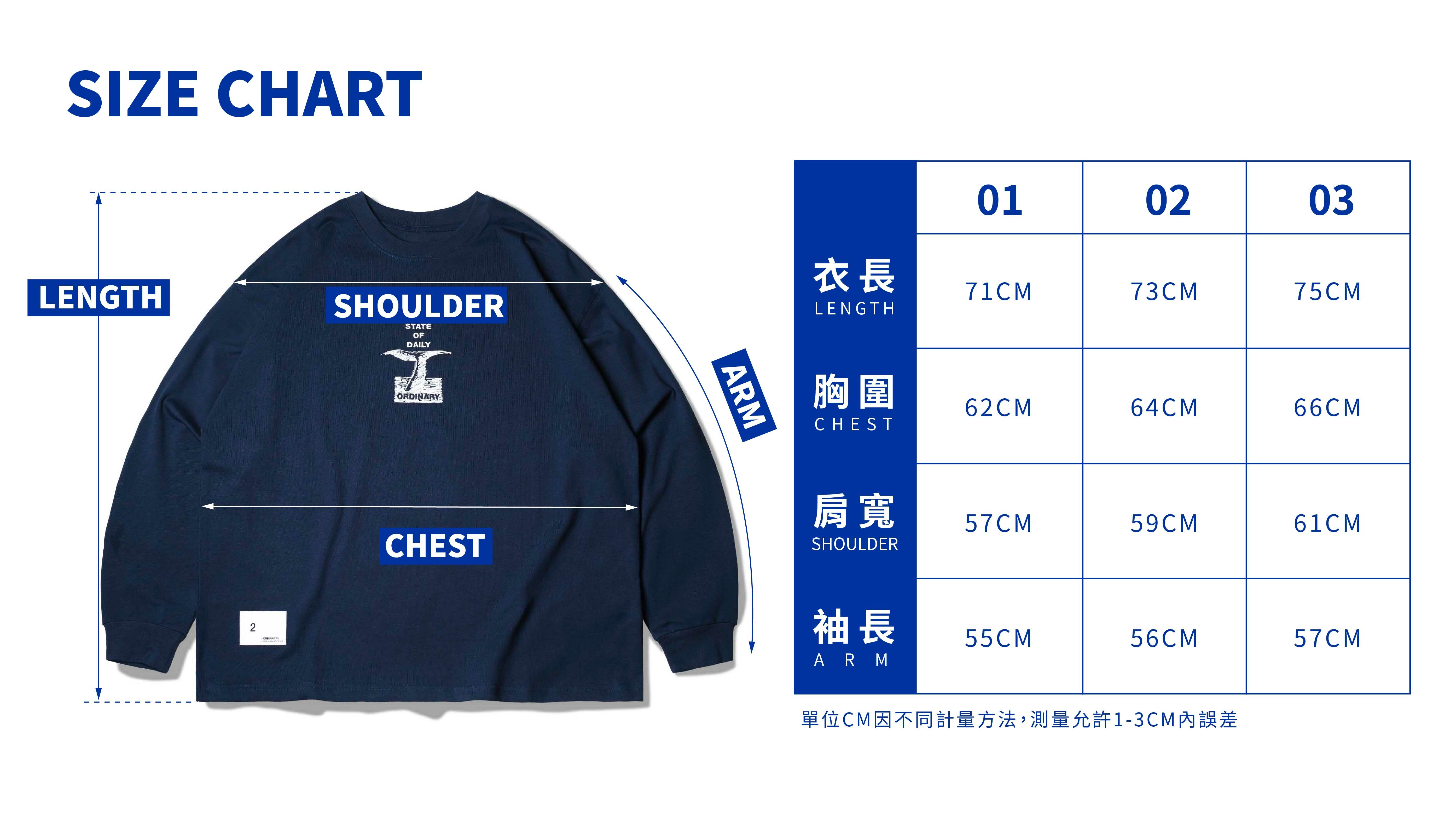 01:衣長71cm / 胸寬62cm /肩寬57cm/袖長55cm