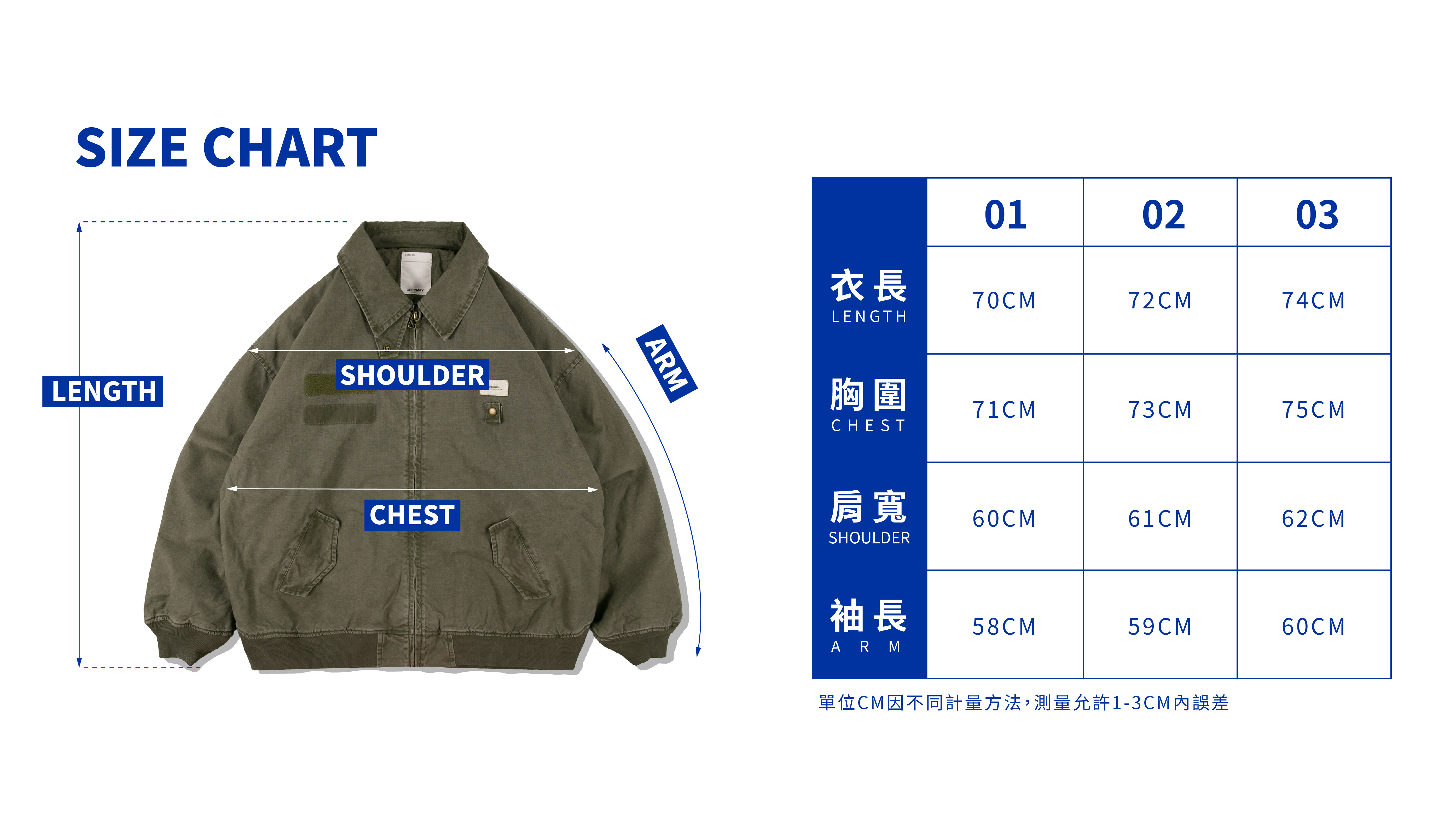 01:衣長70cm / 胸寬71cm / 肩寬60cm / 袖長58cm