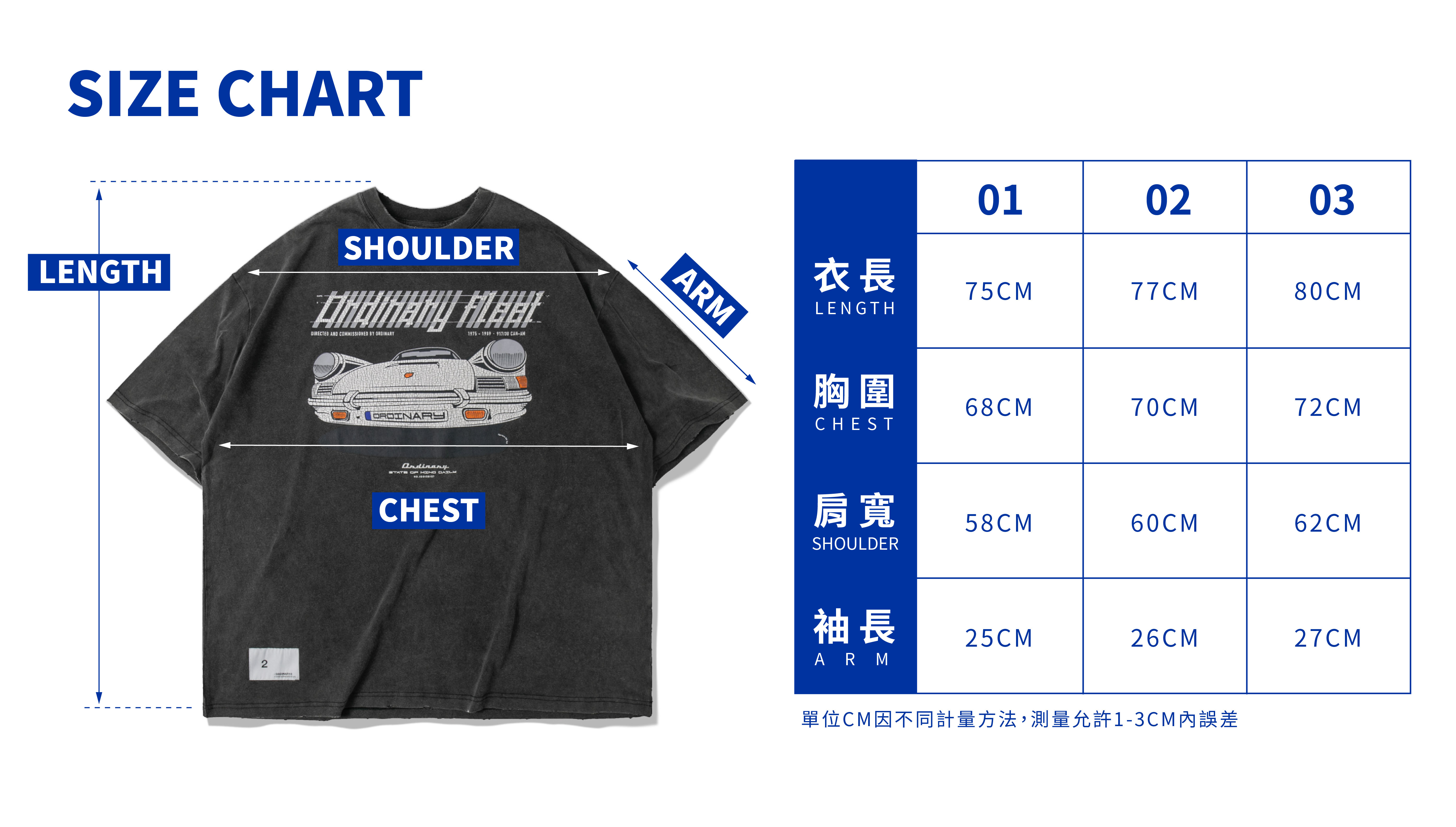 01:衣長75cm / 胸寬68cm / 肩寬58cm / 袖長25cm