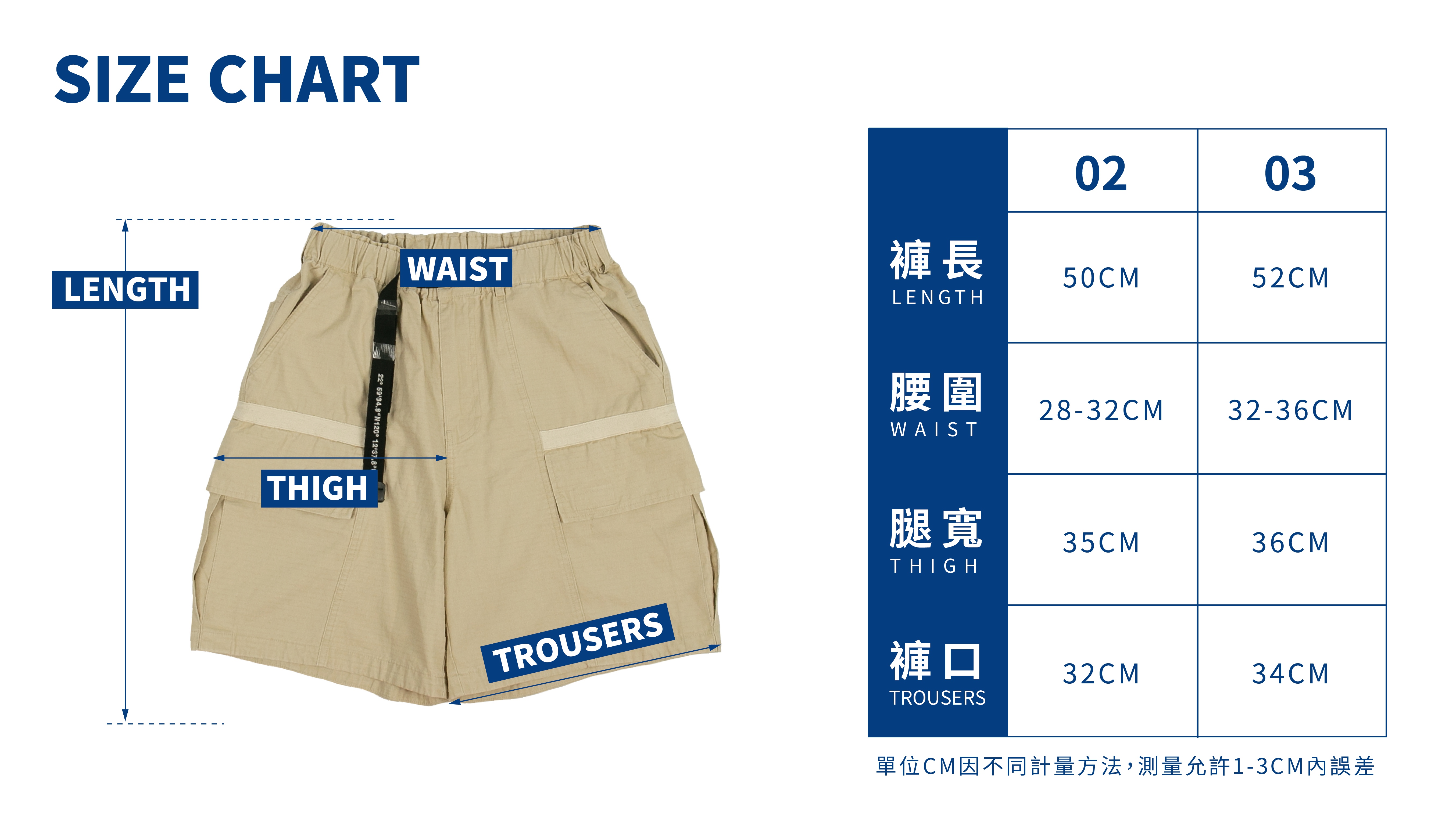 02:褲長50cm / 大腿寬35cm / 褲口寬32cm / 腰圍28-32腰圍