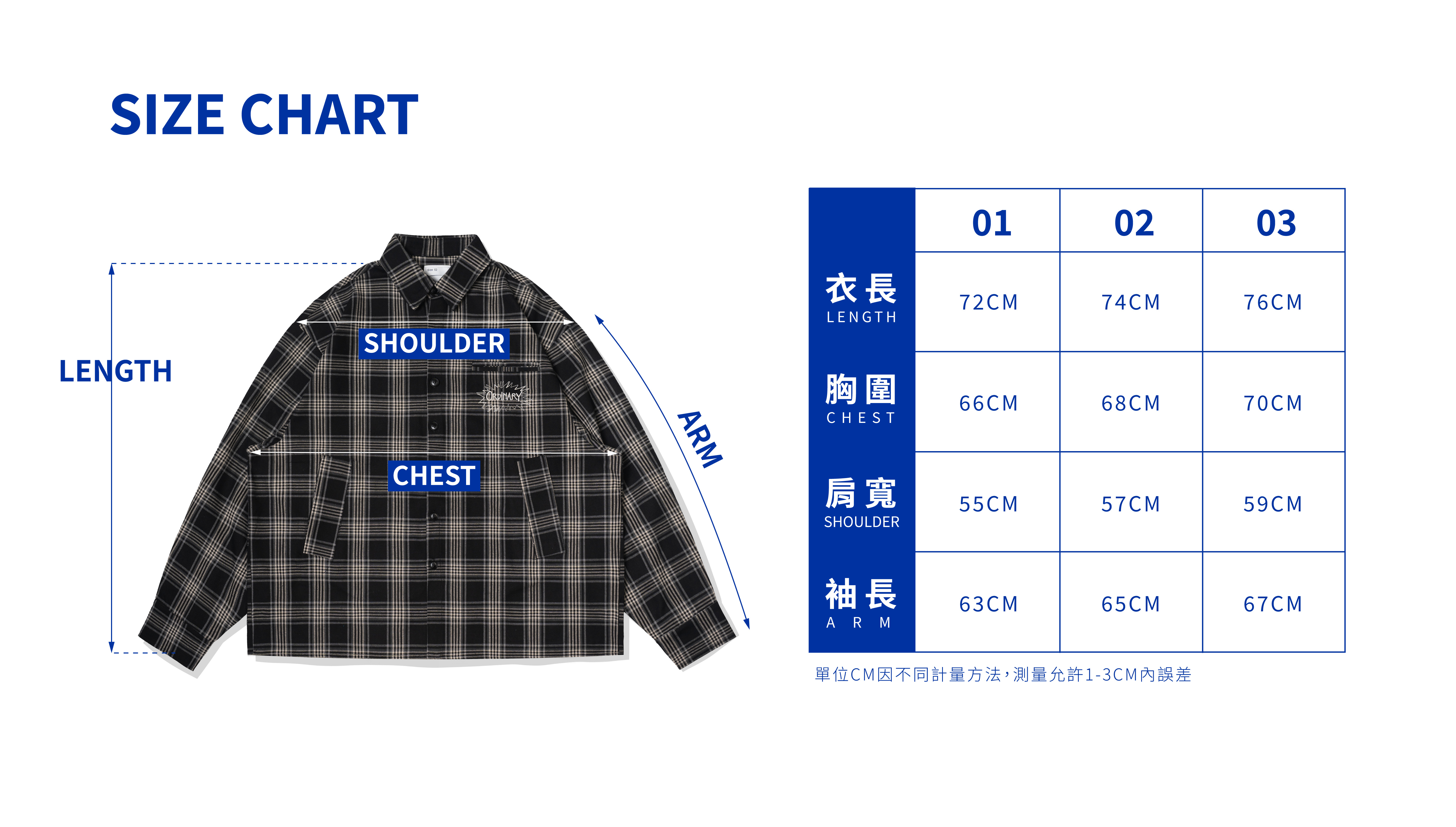 01:衣長72cm / 胸寬66cm / 肩寬55cm / 袖長63cm
