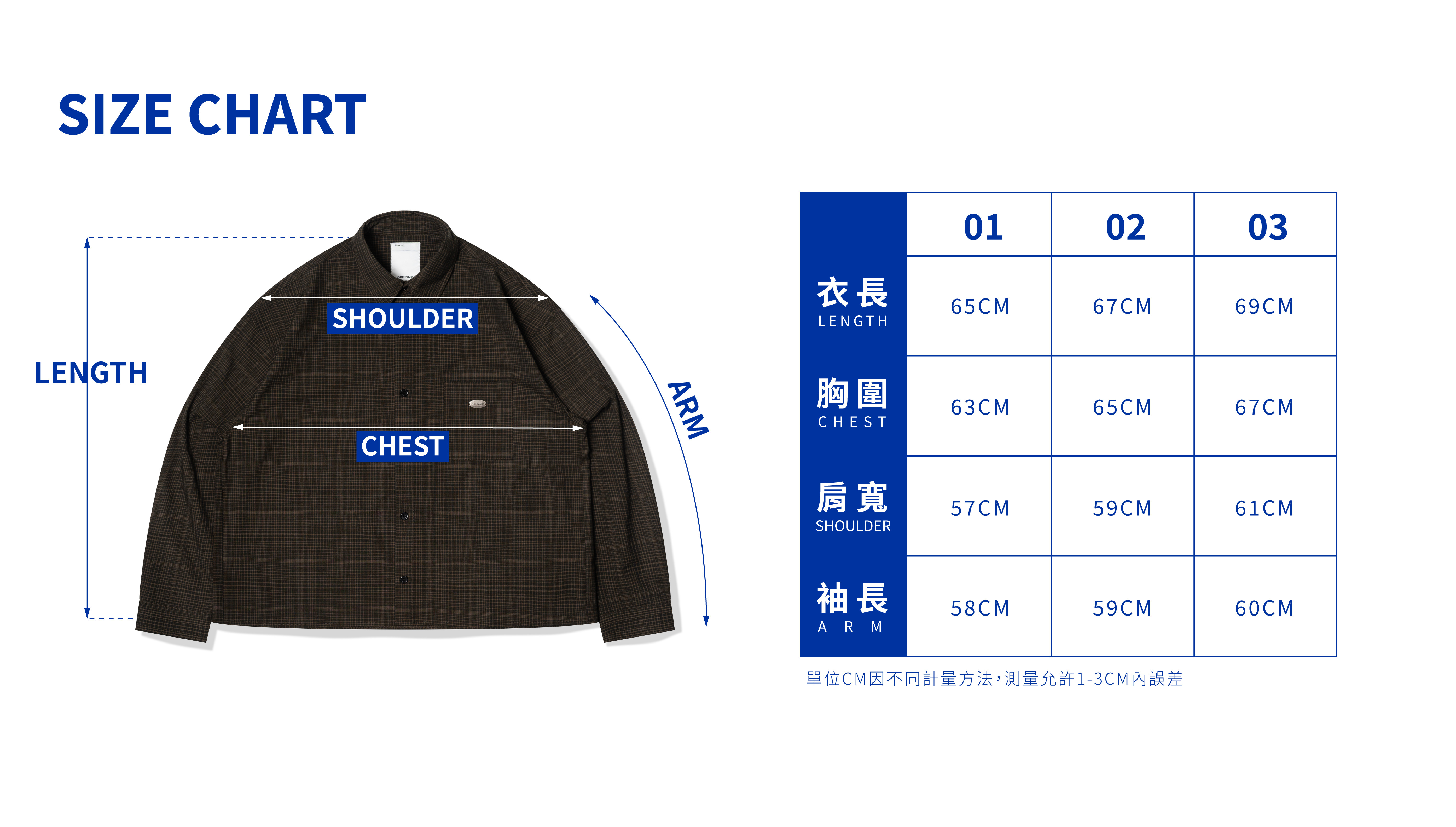 01:衣長65 / 胸寬63 / 肩寬57 / 袖長58