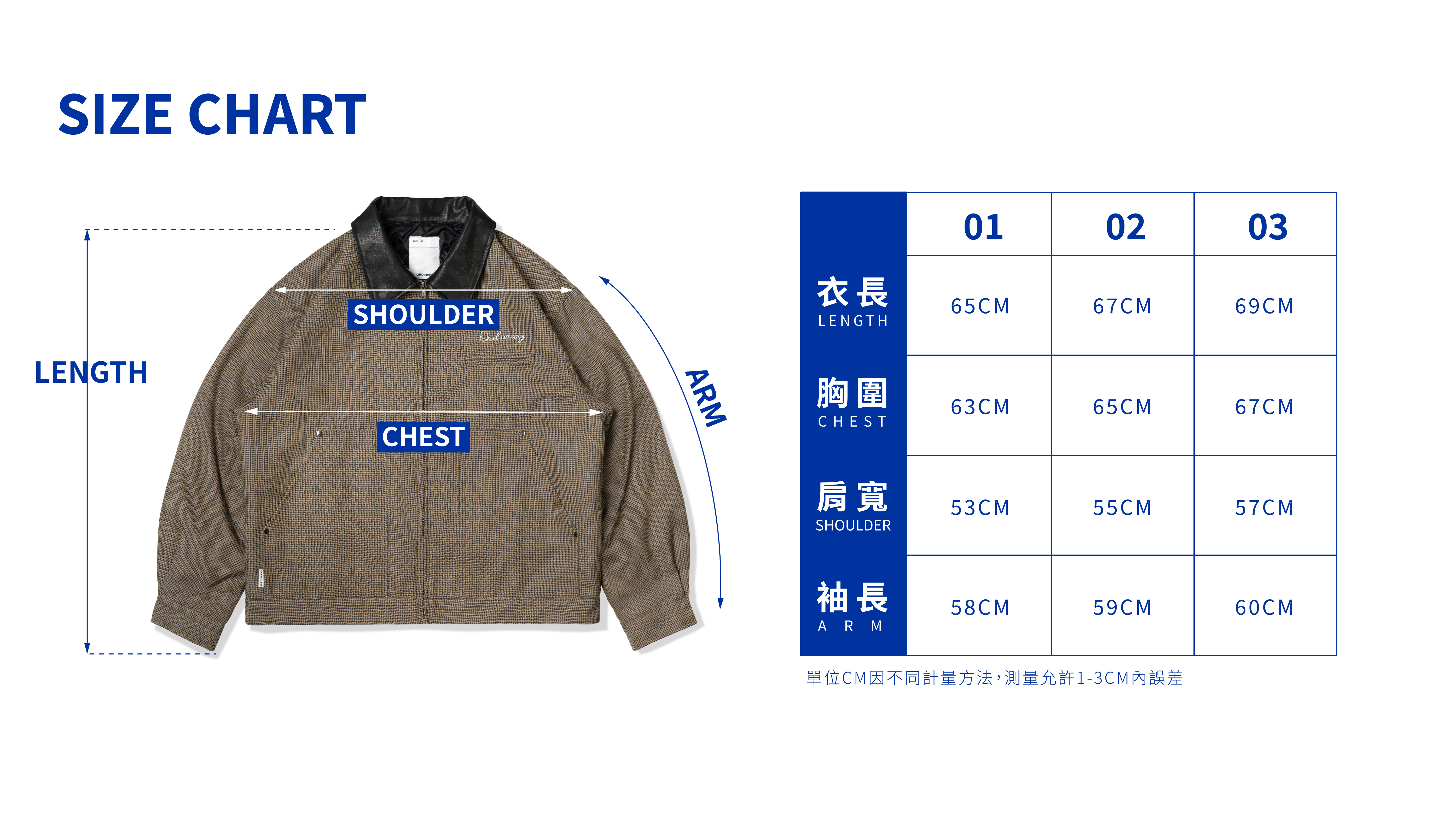 01:衣長65cm / 胸寬63cm / 肩寬53cm / 袖長58cm