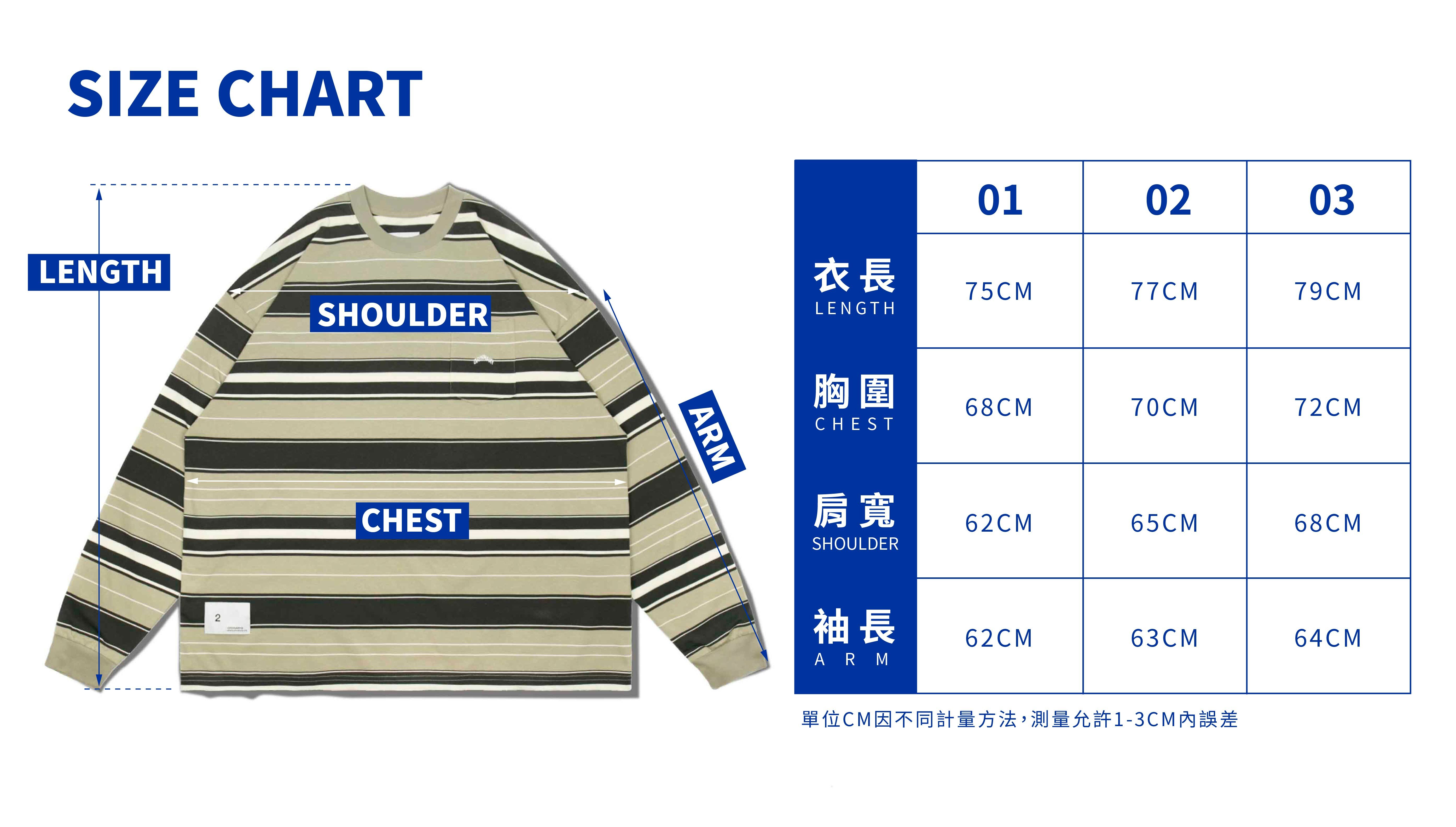 02:衣長77cm / 胸寬70cm / 肩寬65cm / 袖長63cm