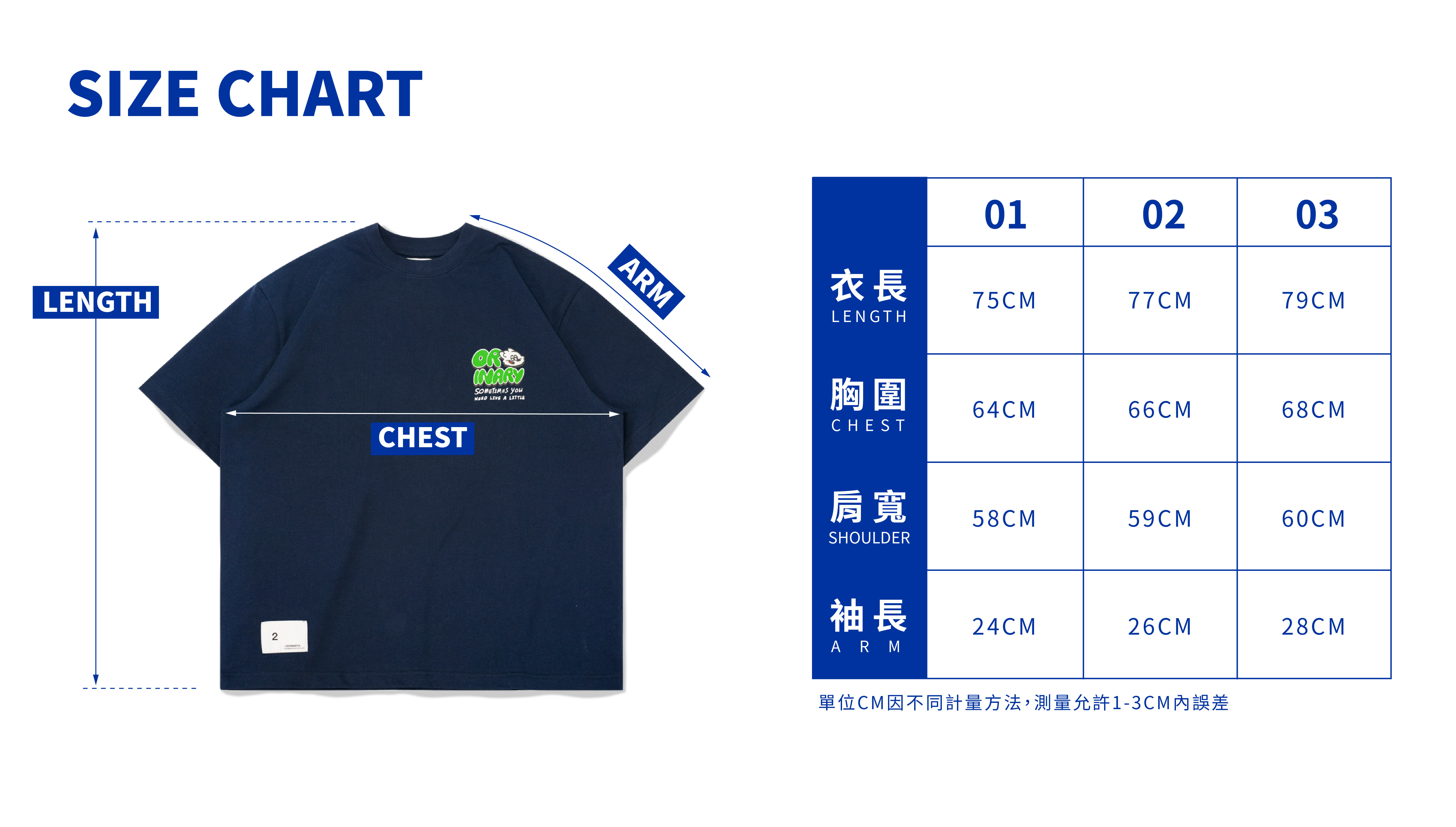 01:衣長75cm / 胸寬64cm /肩寬58cm/袖長24cm